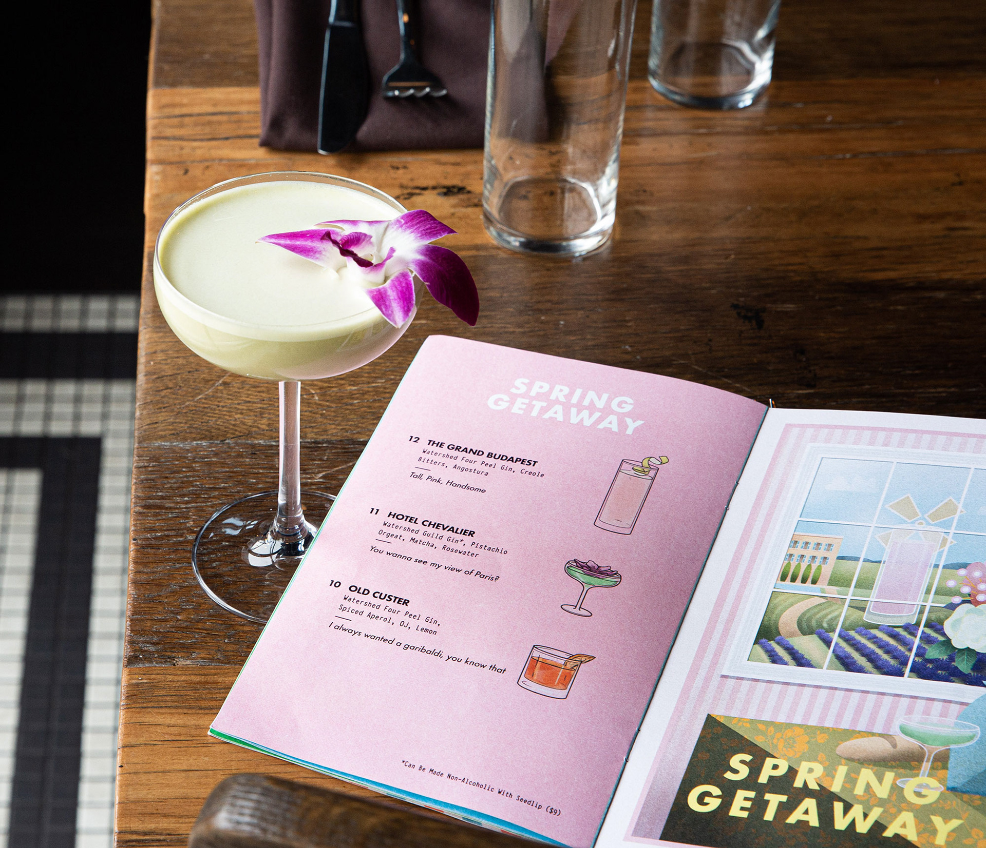 Illustration and design for Watershed's cocktail menu "Home and Away".